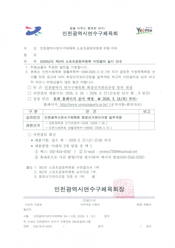 2026년도 제2차 스포츠공정위원회 서면결의 실시 안내