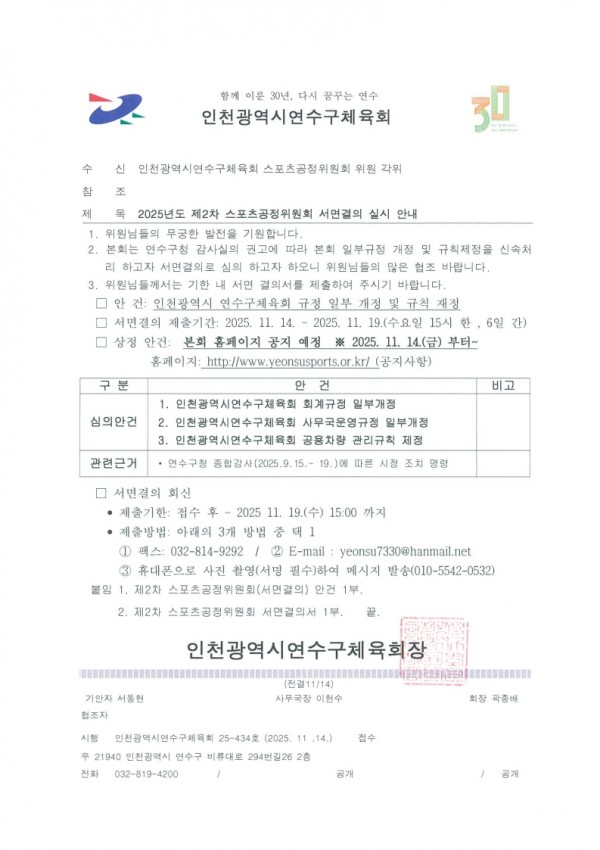 2025년도 제2차 스포츠공정위원회 서면결의 실시 안내